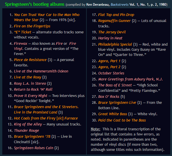 E TICKET is the bootleg release that angered the boss and the record company in 1979, leading to one of the most famous lawsuits against bootlegging in the history of the U.S. music industry.