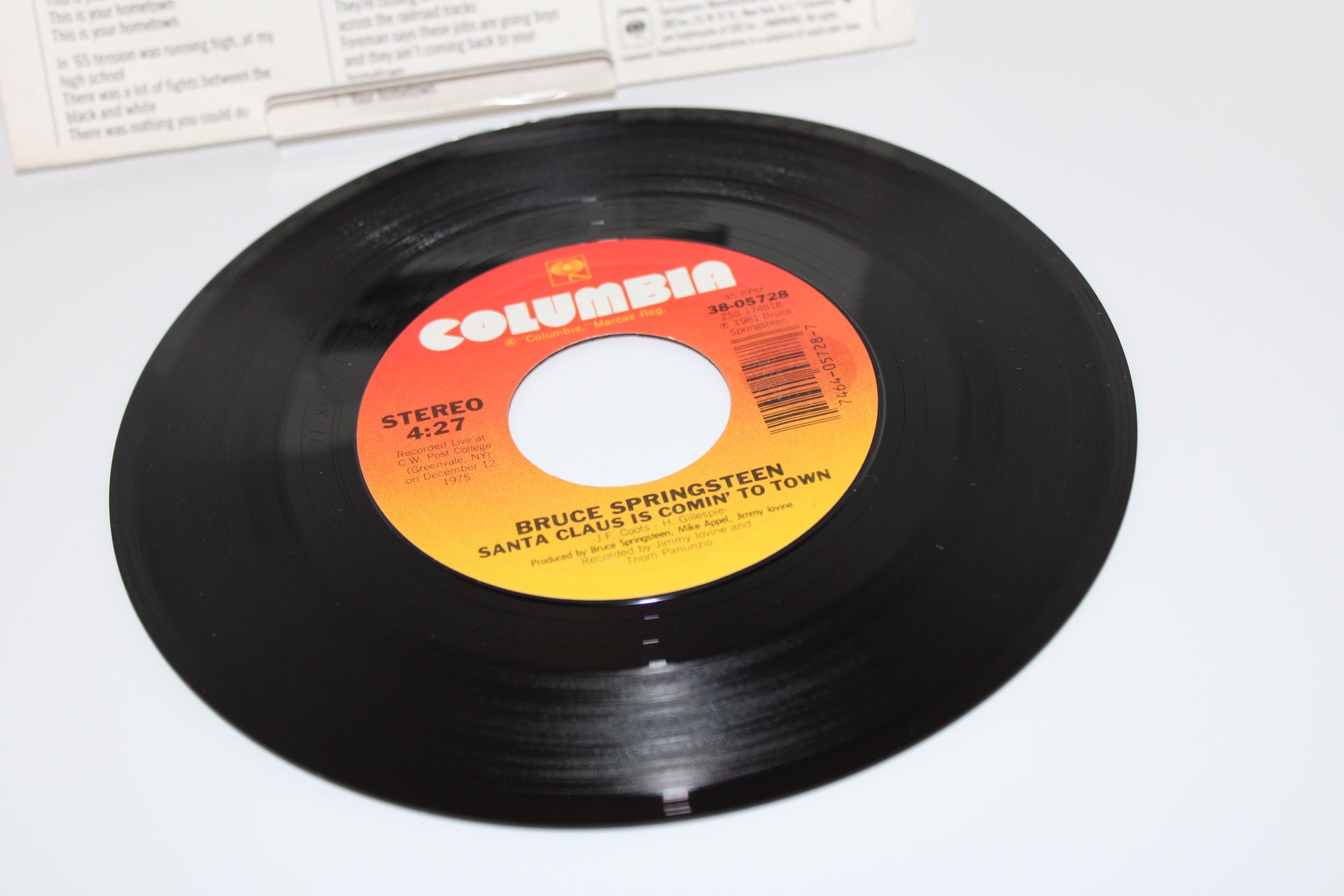 Bruce Springsteen - My Hometown & Santa Claus is Comin' to Town "Live" - 45 Record