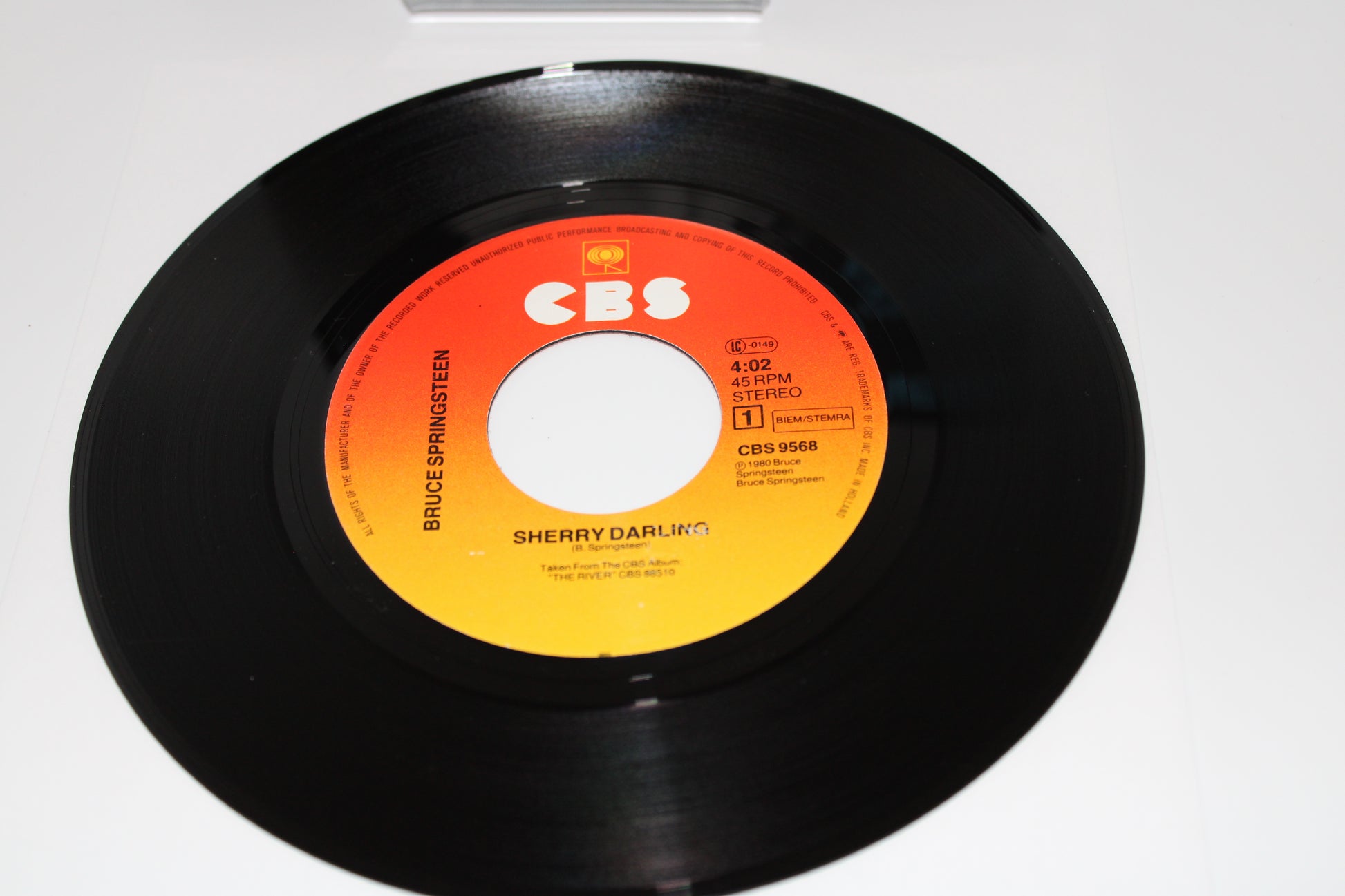Bruce Springsteen Sherry Darling with picture sleeve in Excellent overall condition with minor wear on the words Sherry Darling on the label. Beautiful picture sleeve and vinyl released in 1980. Vinyl is near perfect. Holland import.