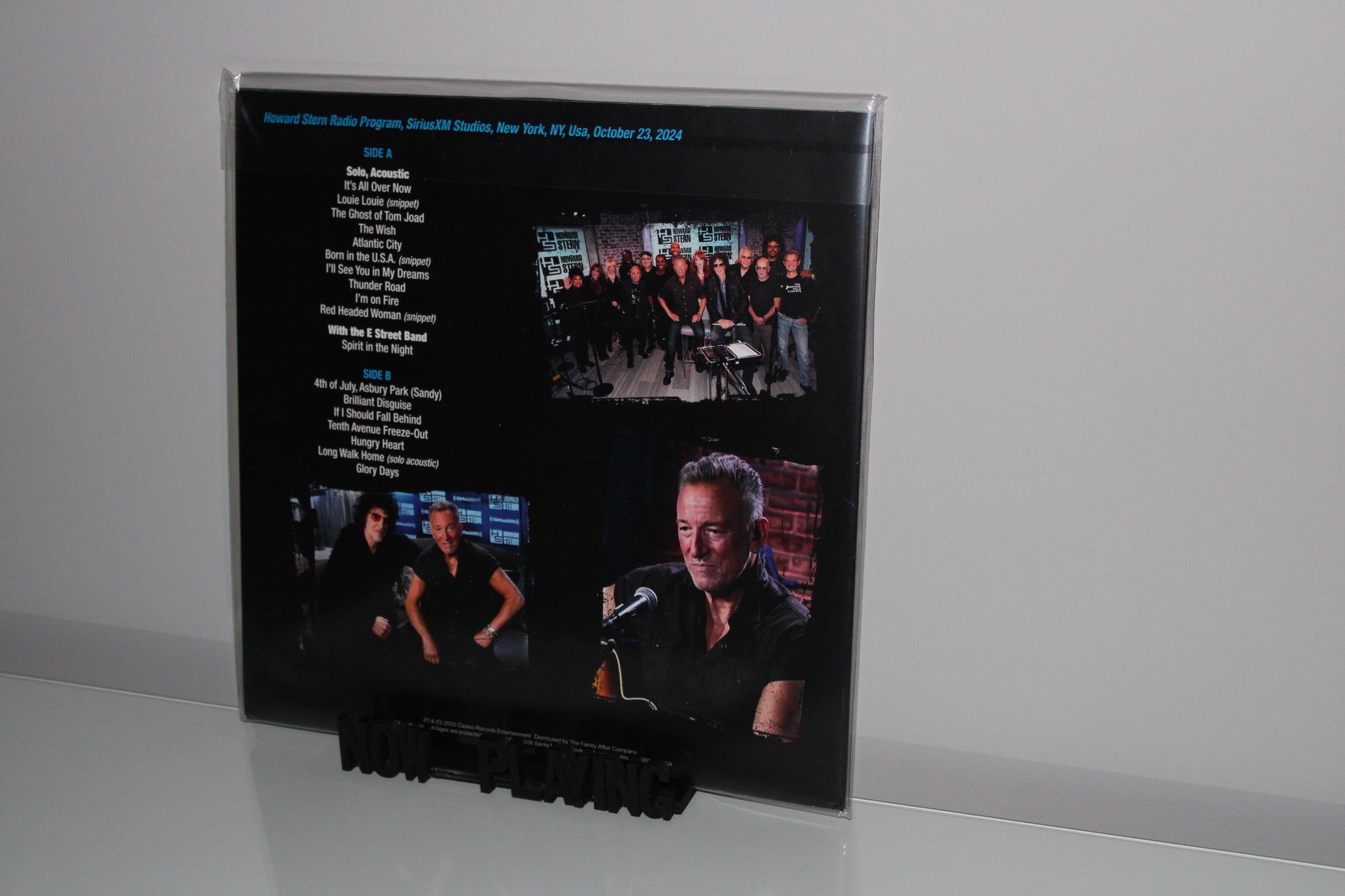 Howard Stern hosted Bruce Springsteen to talk about life and career and play some great music. This LP features all the music performed, solo, with Patti Scialfa and with the E Street Band.