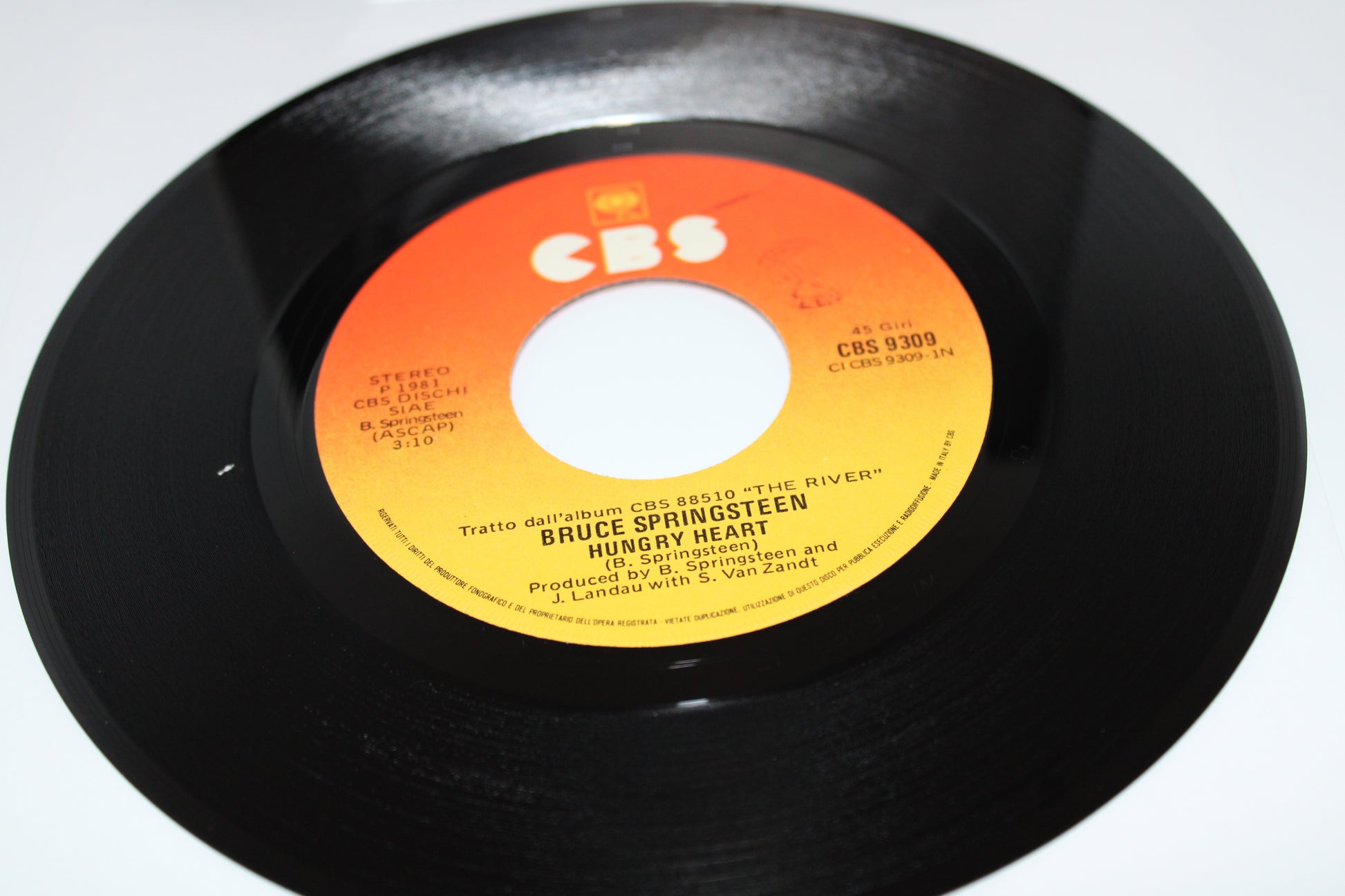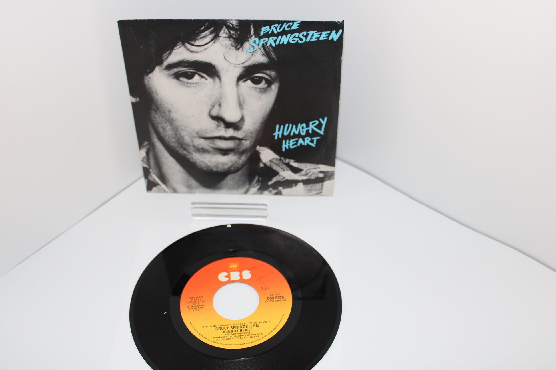 Bruce Springsteen Hungry Heart 45/7". Beautiful picture sleeve and vinyl. Vinyl is near perfect with a mark on the vinyl that does not affect play. Sounds perfect.
