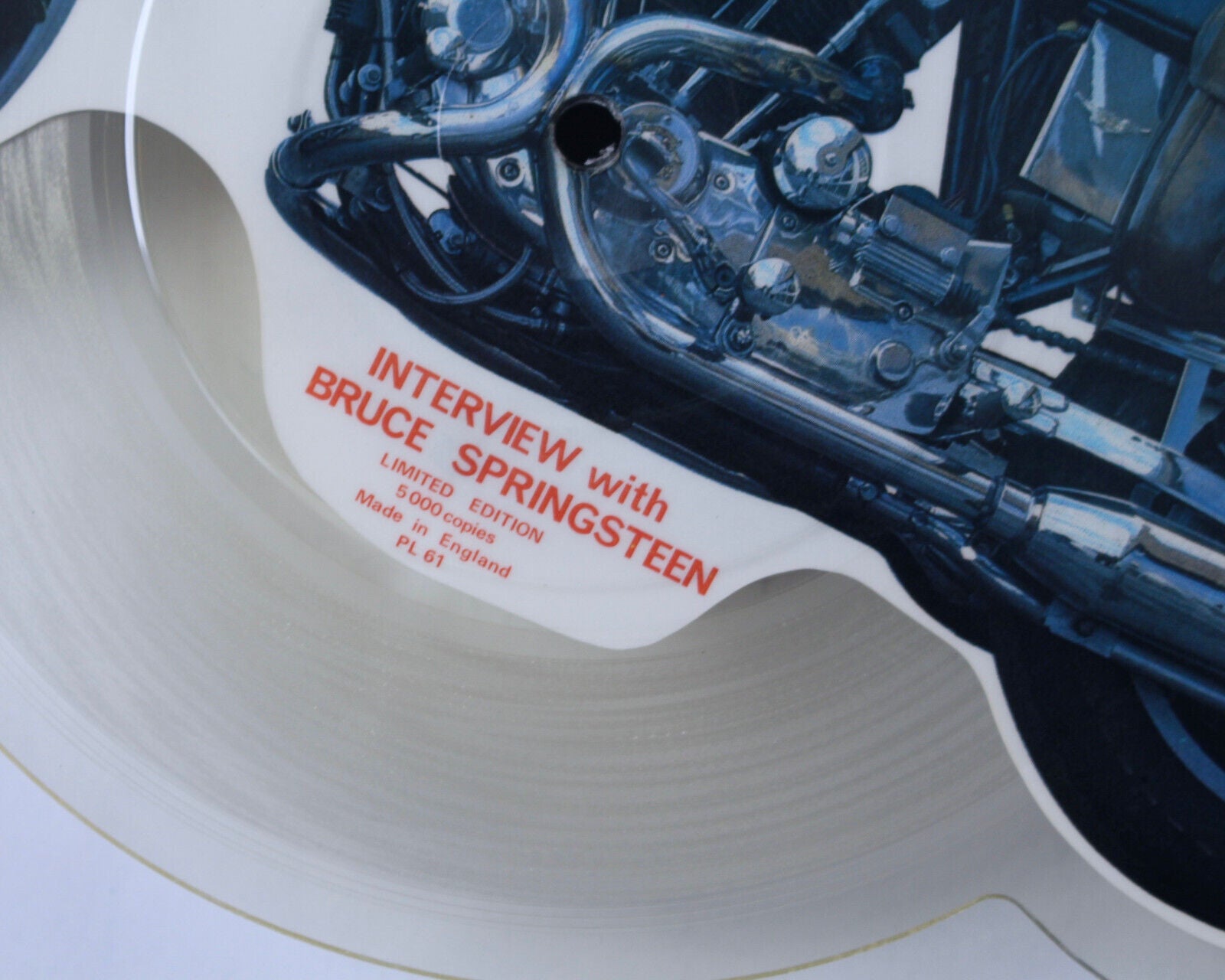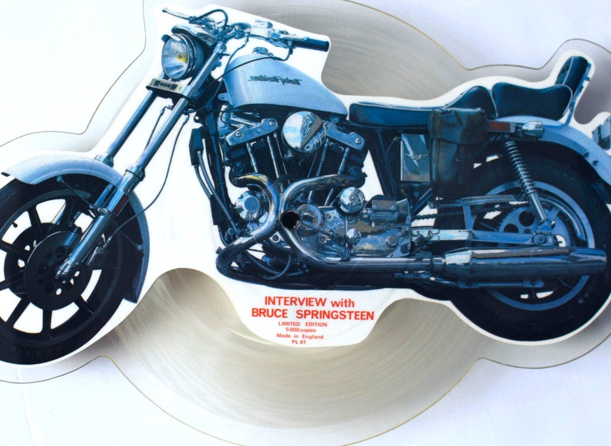 Interview With Bruce Springsteen Harley Davidson Shaped Picture Disc in PVC sleeve.