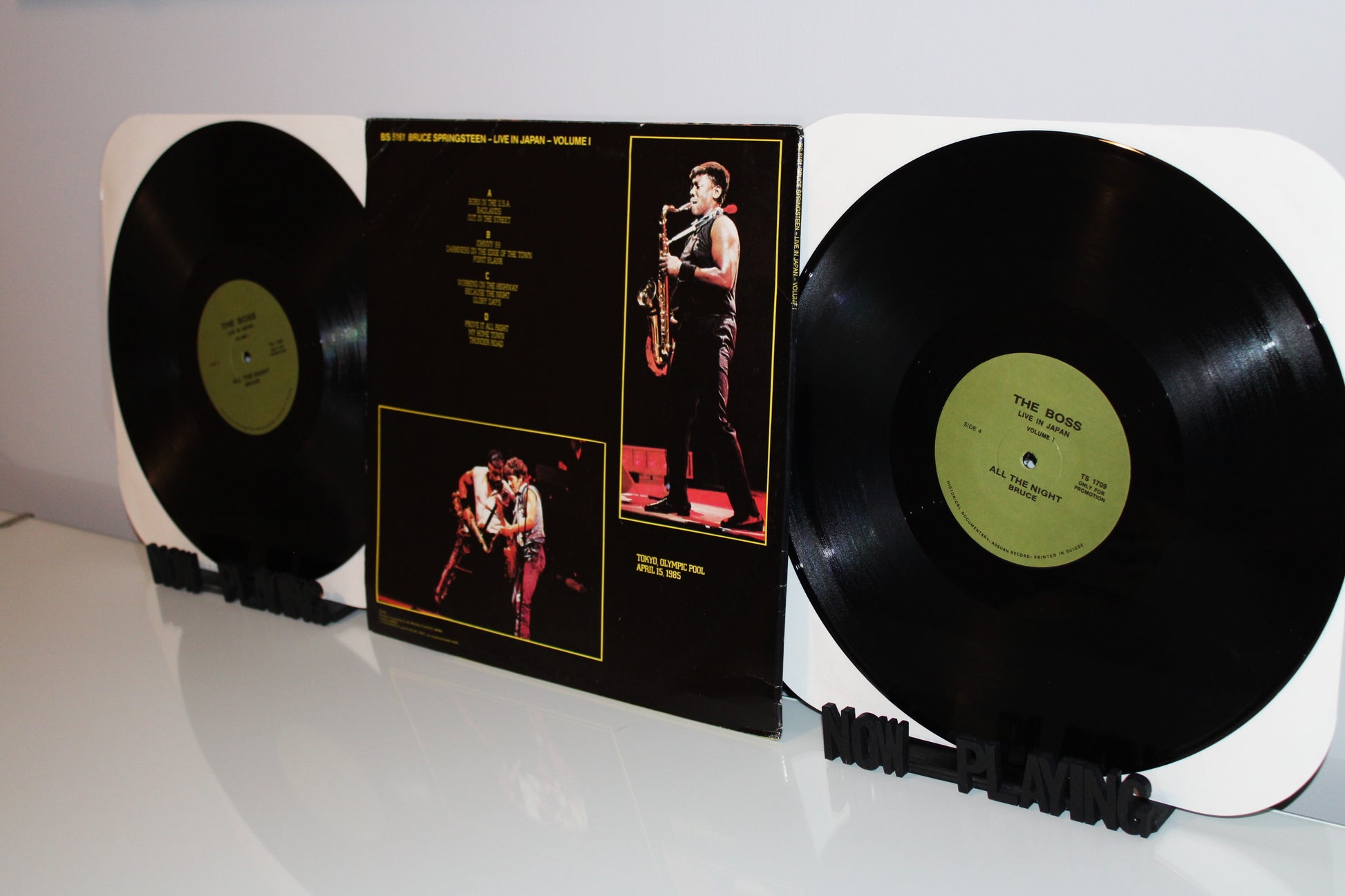 Bruce Springsteen Live In Japan 4 LPs Volume 1 & 2 Unofficial Vinyl. Excellent overall vinyl condition. Both jackets have minor creases as seen in pictures. No discoloration, fully in tact seams. Excellent and rare Japan concert.