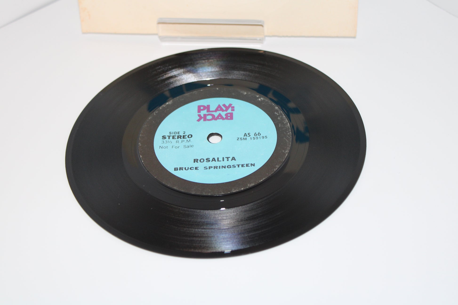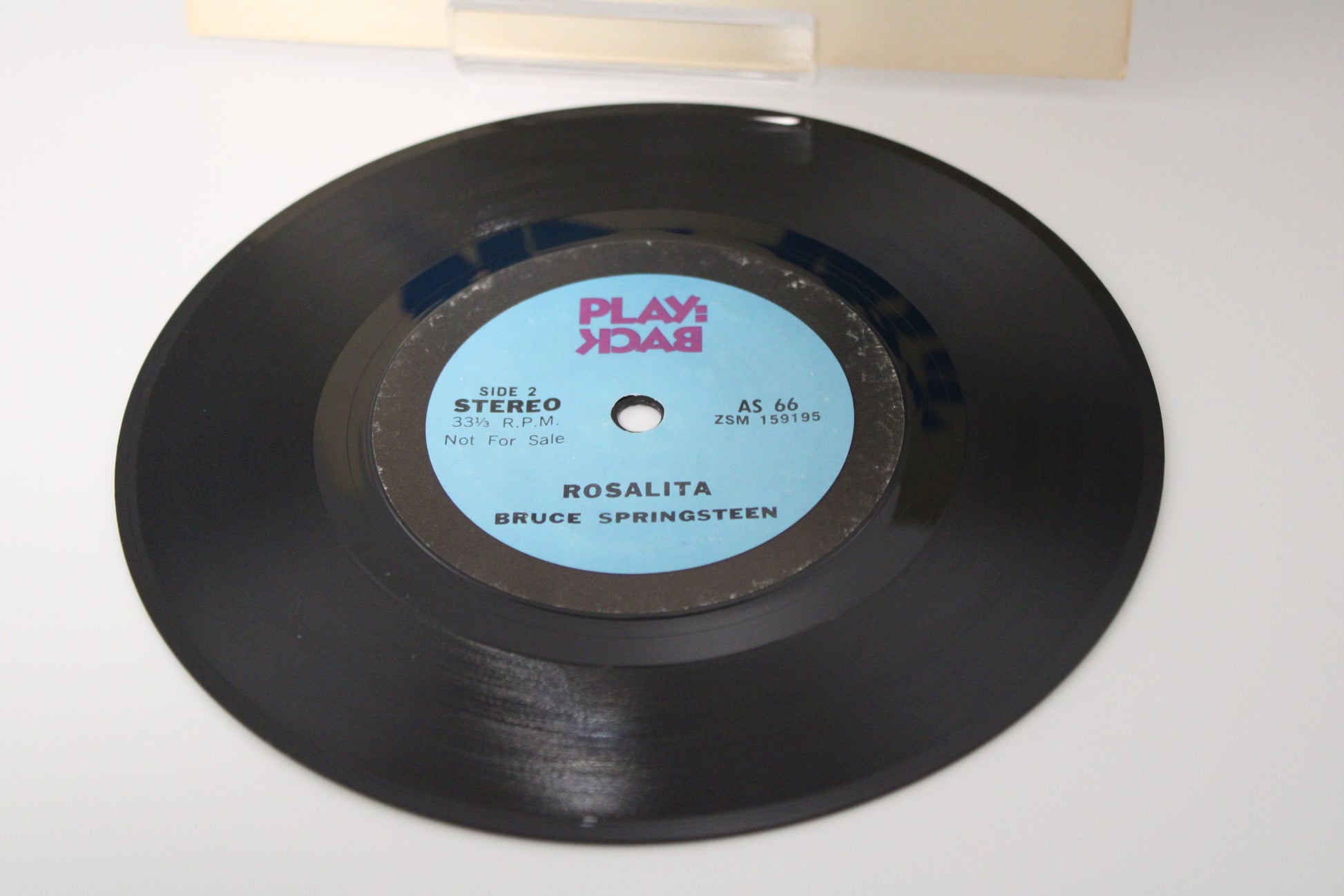 "Playback" subscription club asked the consumer to provide feedback via snail mail. First known recording of Rosalita intended for the consumer. This 7” plays at 33-1/3 rpm.