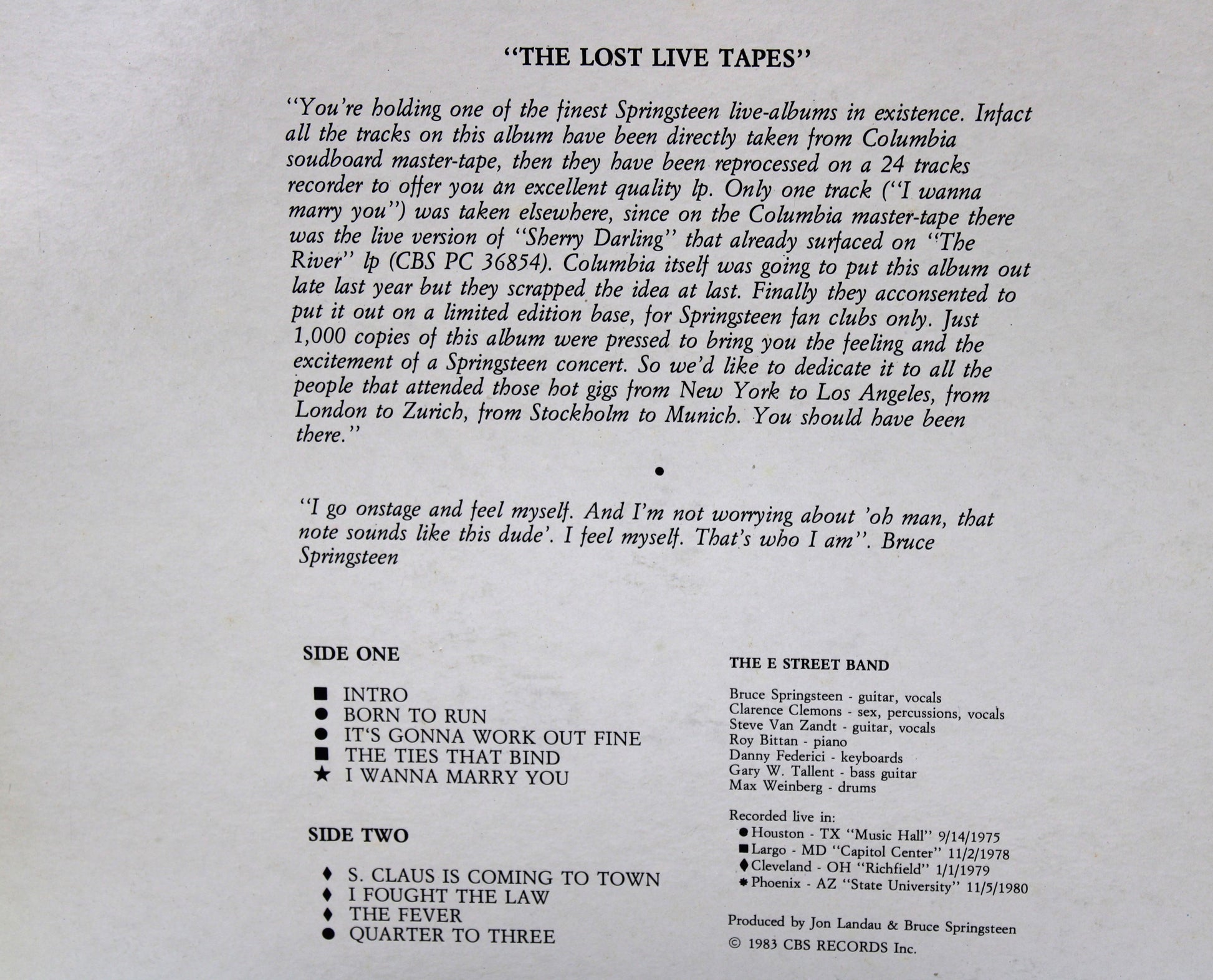 Bruce Springsteen - The Lost Live Tapes - LP Vinyl - Near Mint. Only 1000 were released.
