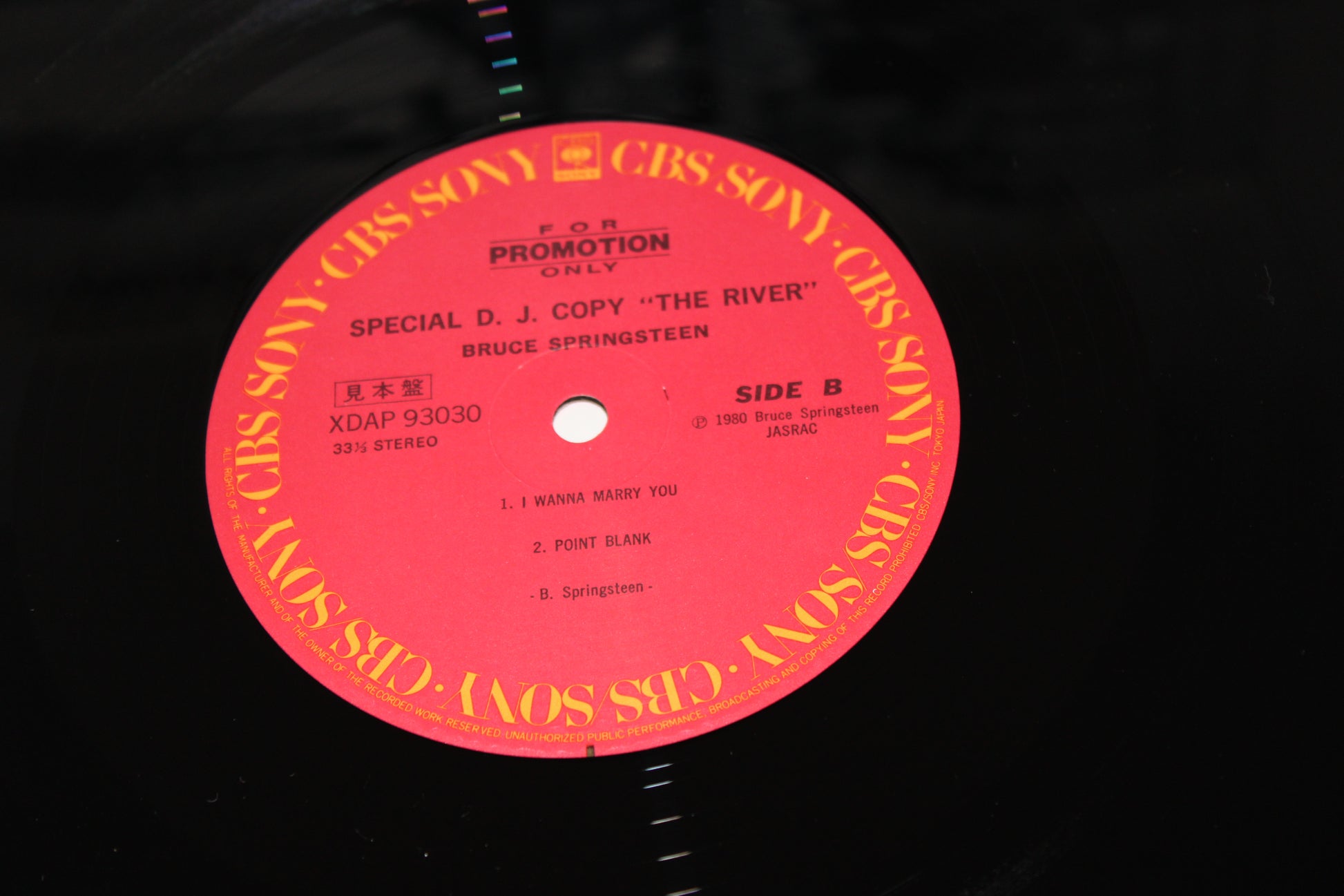 Bruce Springsteen & The E Street Band - The Killer Tracks From The River. One of the most sought after and rare Promo vinyl records in the world. Approximately 100 were produced by CBS/SONY with "Promotion Only" on red labels. Please see pictures of the actual record, cover/jacket, inserts. No stains, no imperfections.