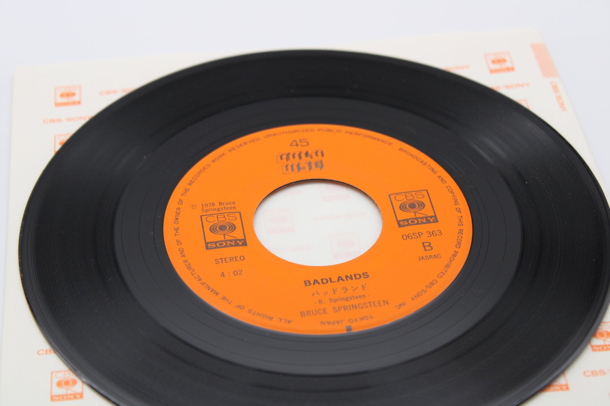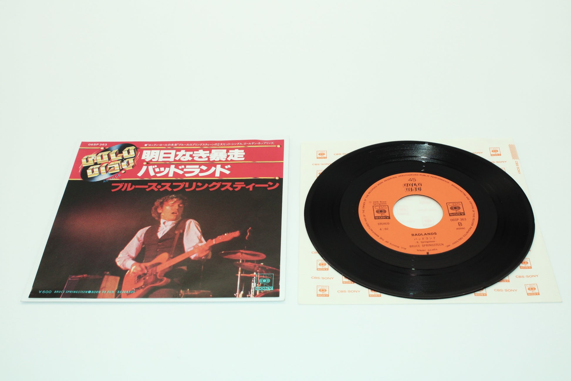 Badlands and Born to Run and Badlands - 1978 Japan 45 single with a unique picture insert that includes text and lyrics. and the CBS/Sony Japan paper sleeve.