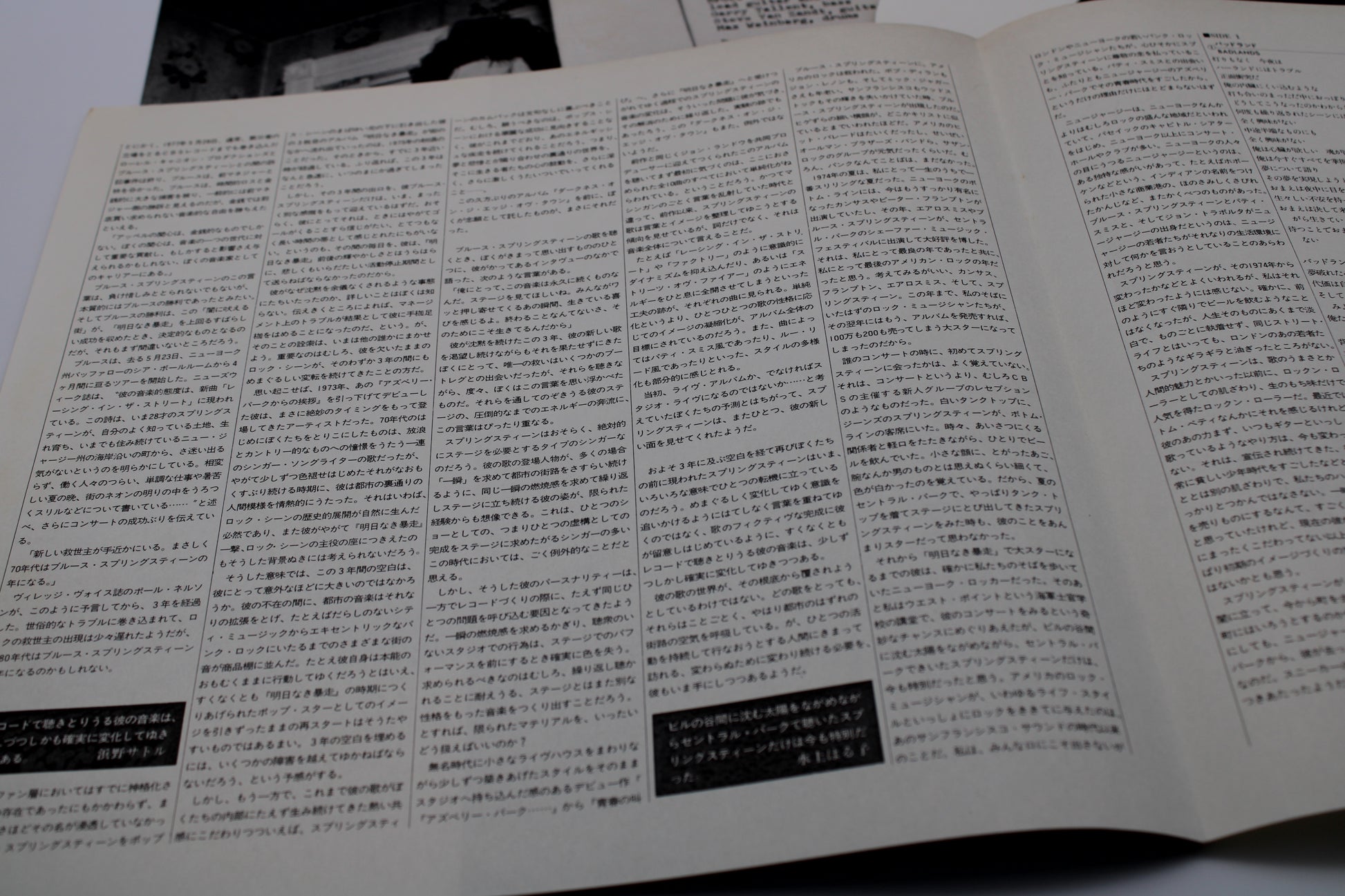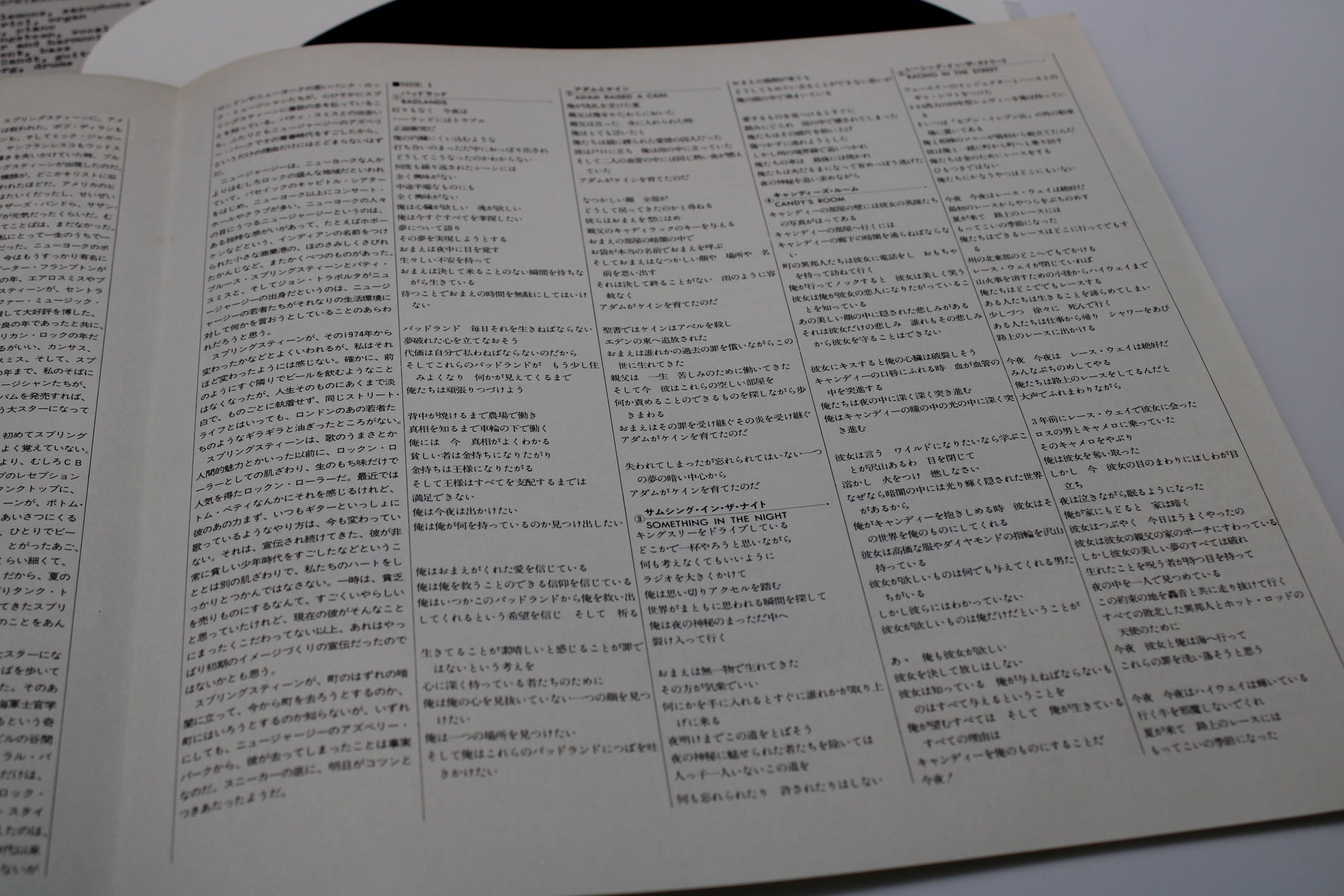First Japanese issue: Black OBI strip with multi-colored Japanese graphics and live shot of Bruce on top; includes a printed inner sleeve with credits and picture of Bruce, plus the bilingual lyric/info insert as well as the English lyric sheet.