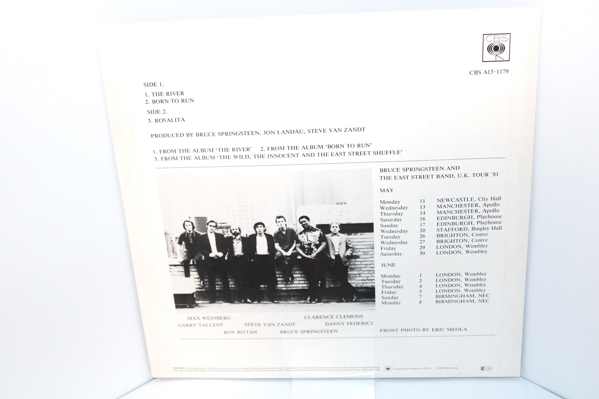 Bruce Springsteen The River 1981 UK 3-track 12" vinyl EP includes Born To Run and Rosalita housed in a picture sleeve with the UK 81 tour dates printed on back side.