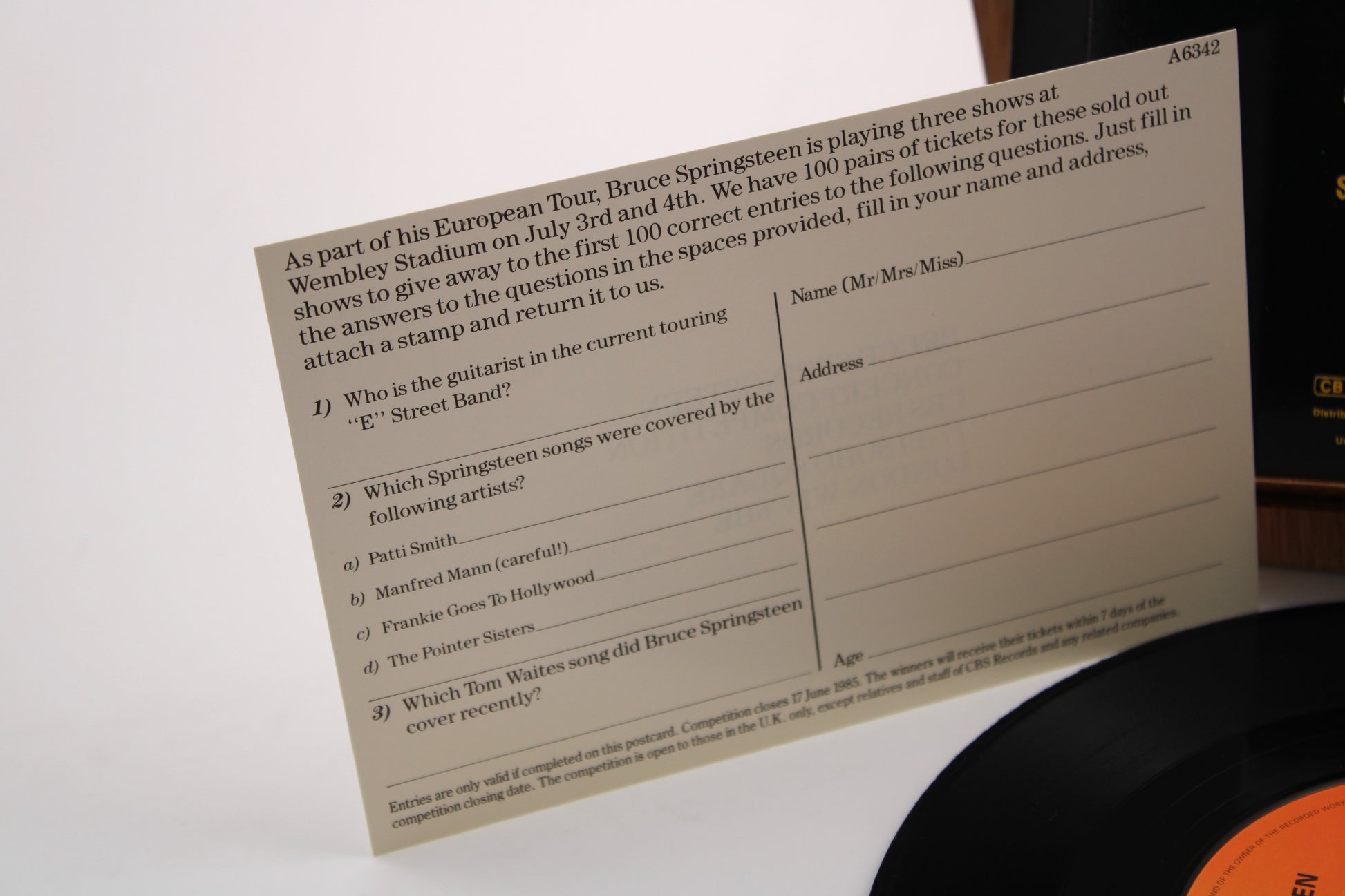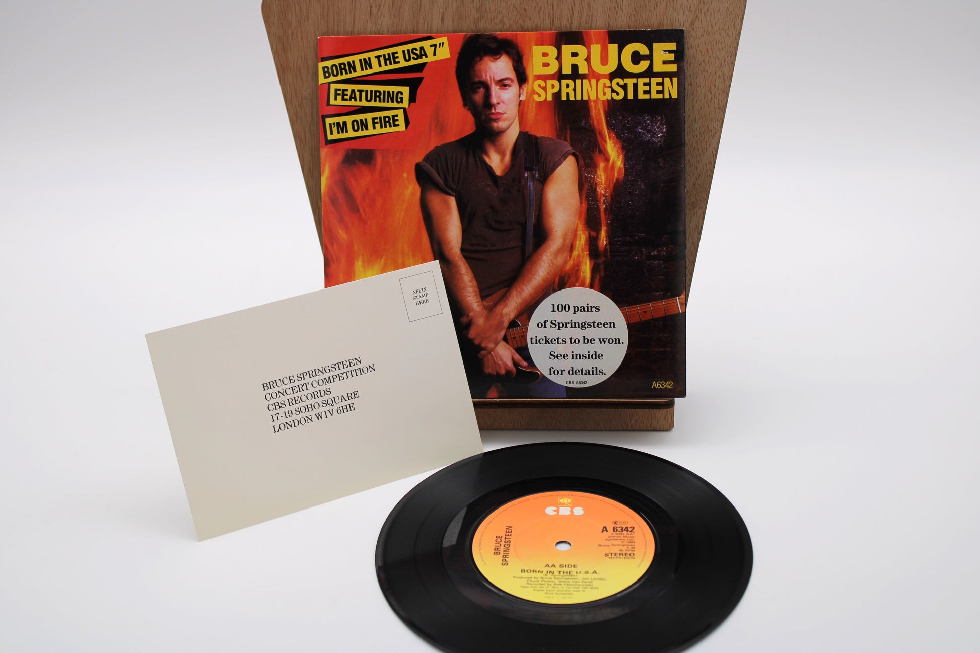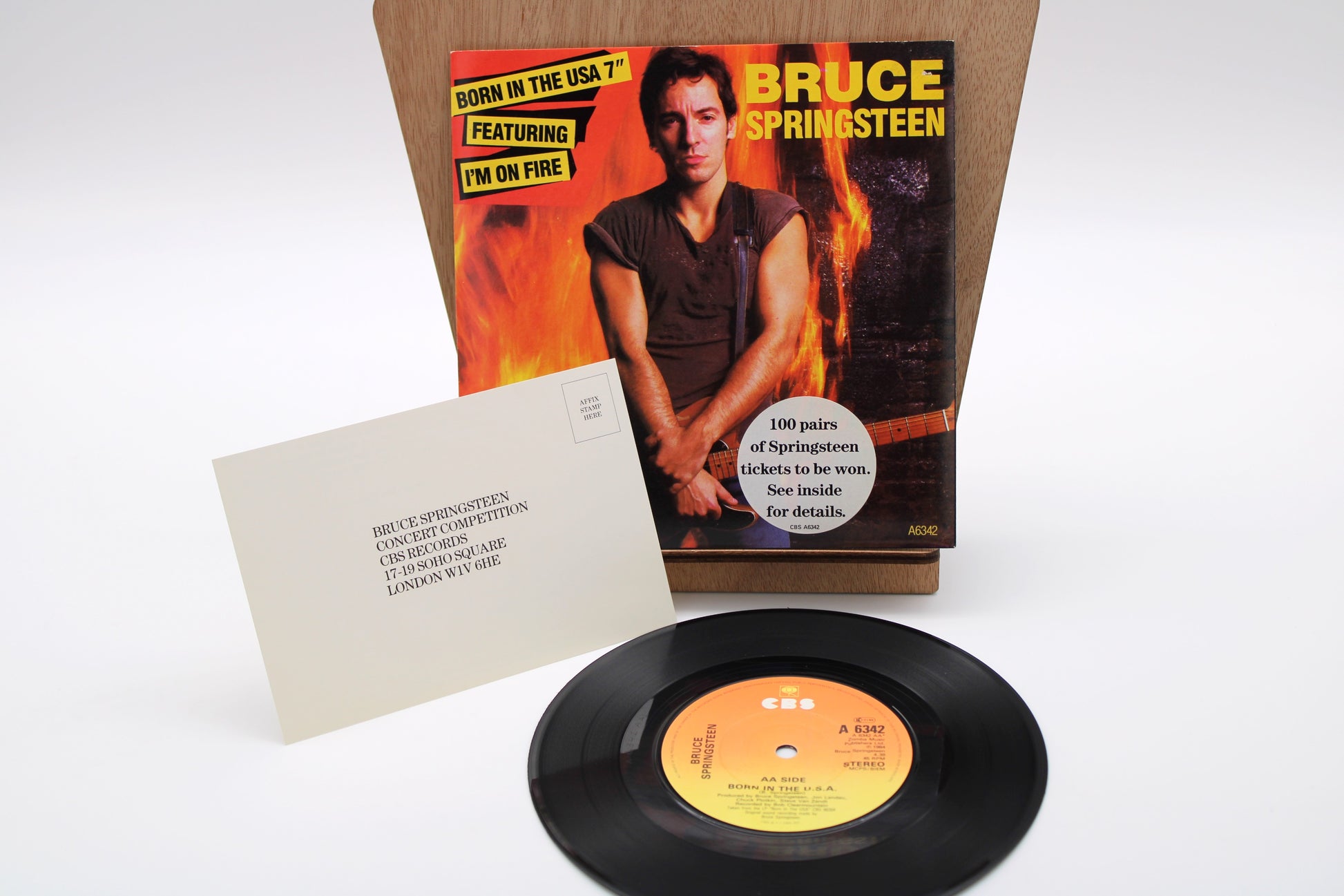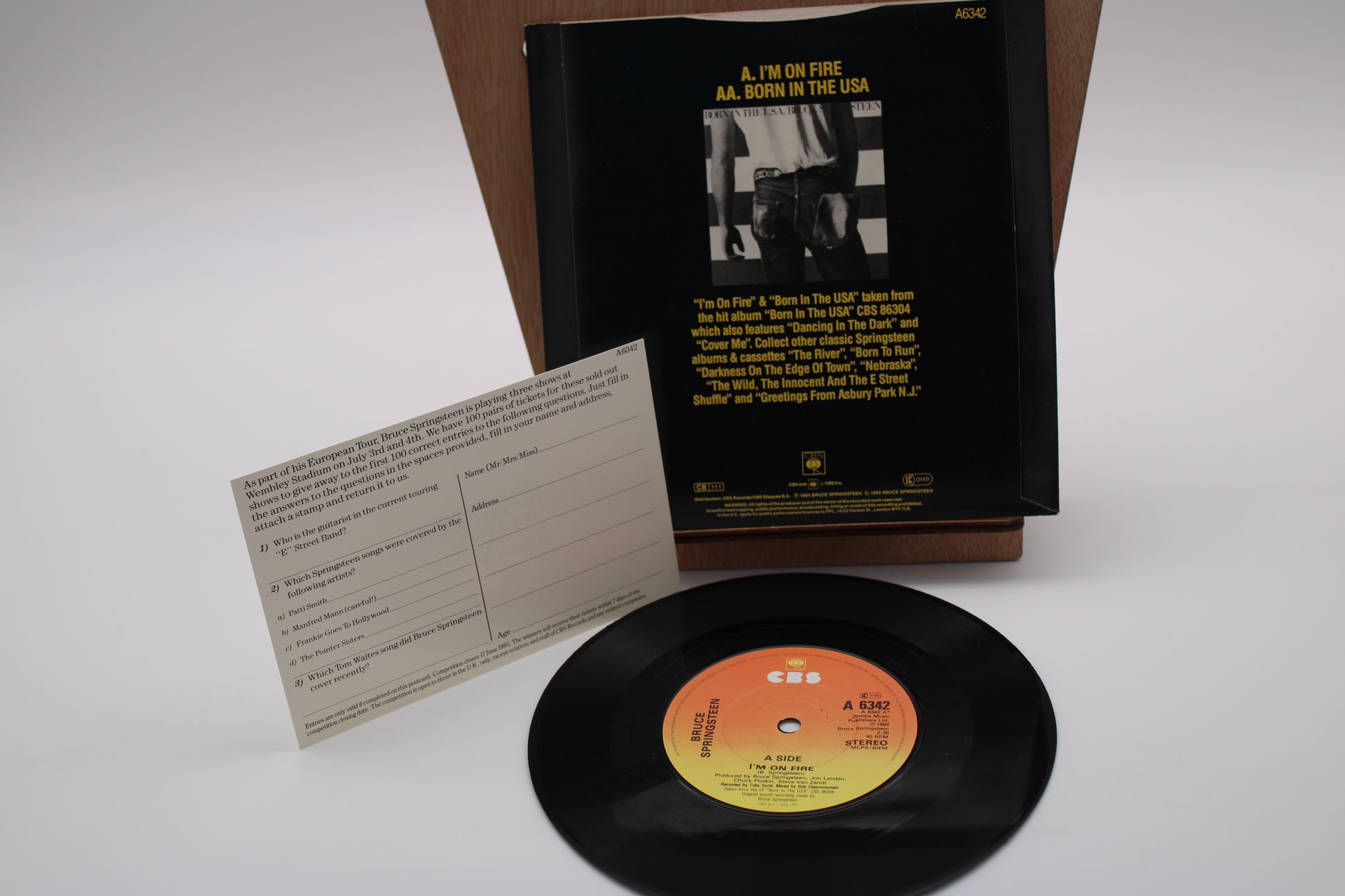 Bruce Springsteen - Born In The USA & I'm On Fire - CBS 45 Record with Competition Sticker & Original Card