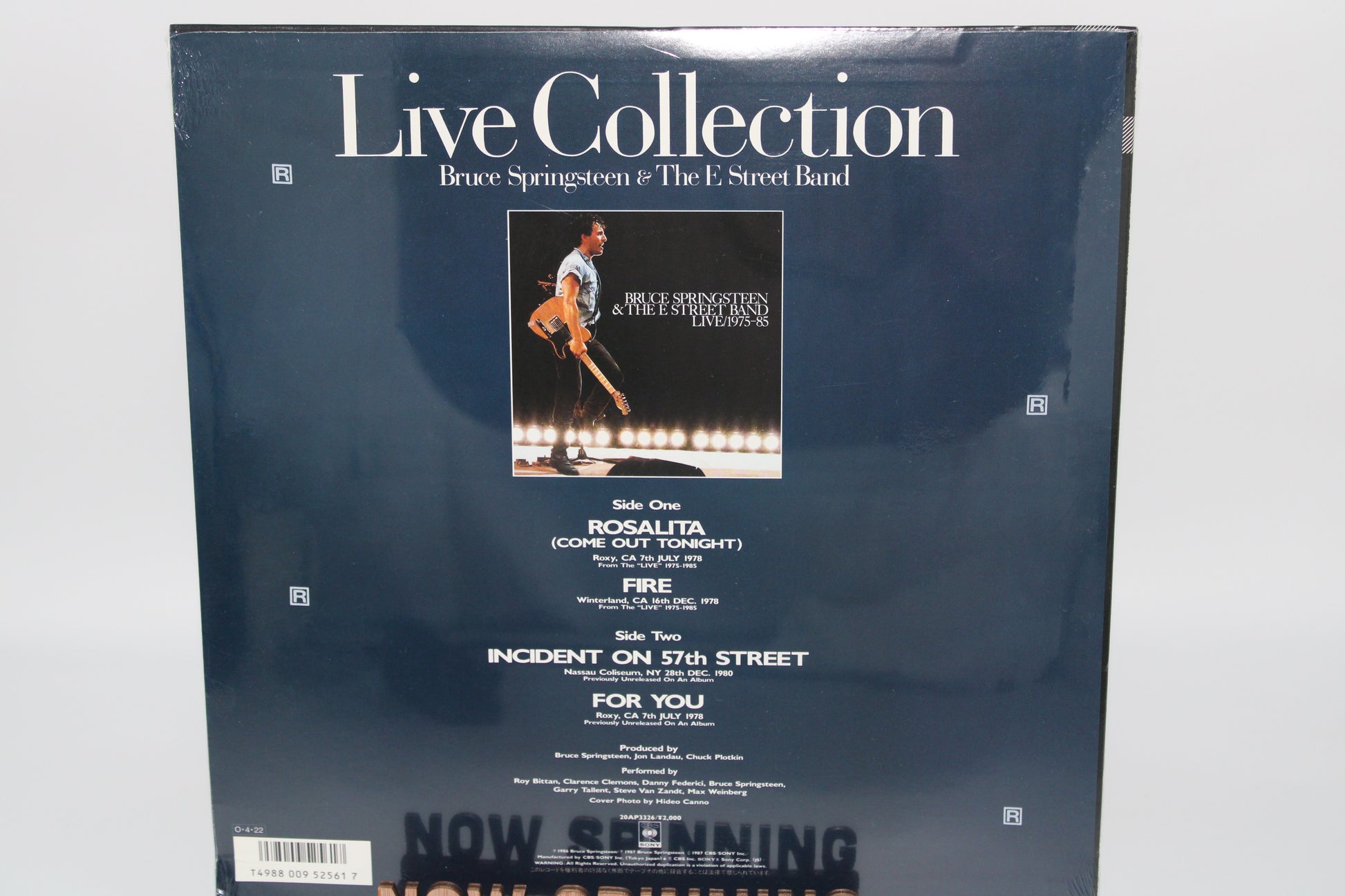 Bruce Springsteen & The E Street Band, Live Collection, Japan Vinyl release only. Still sealed as new in 1987. The reflections are from the lighting in the room where photos were taken. There are no imperfections on the outside jacket/cover.
