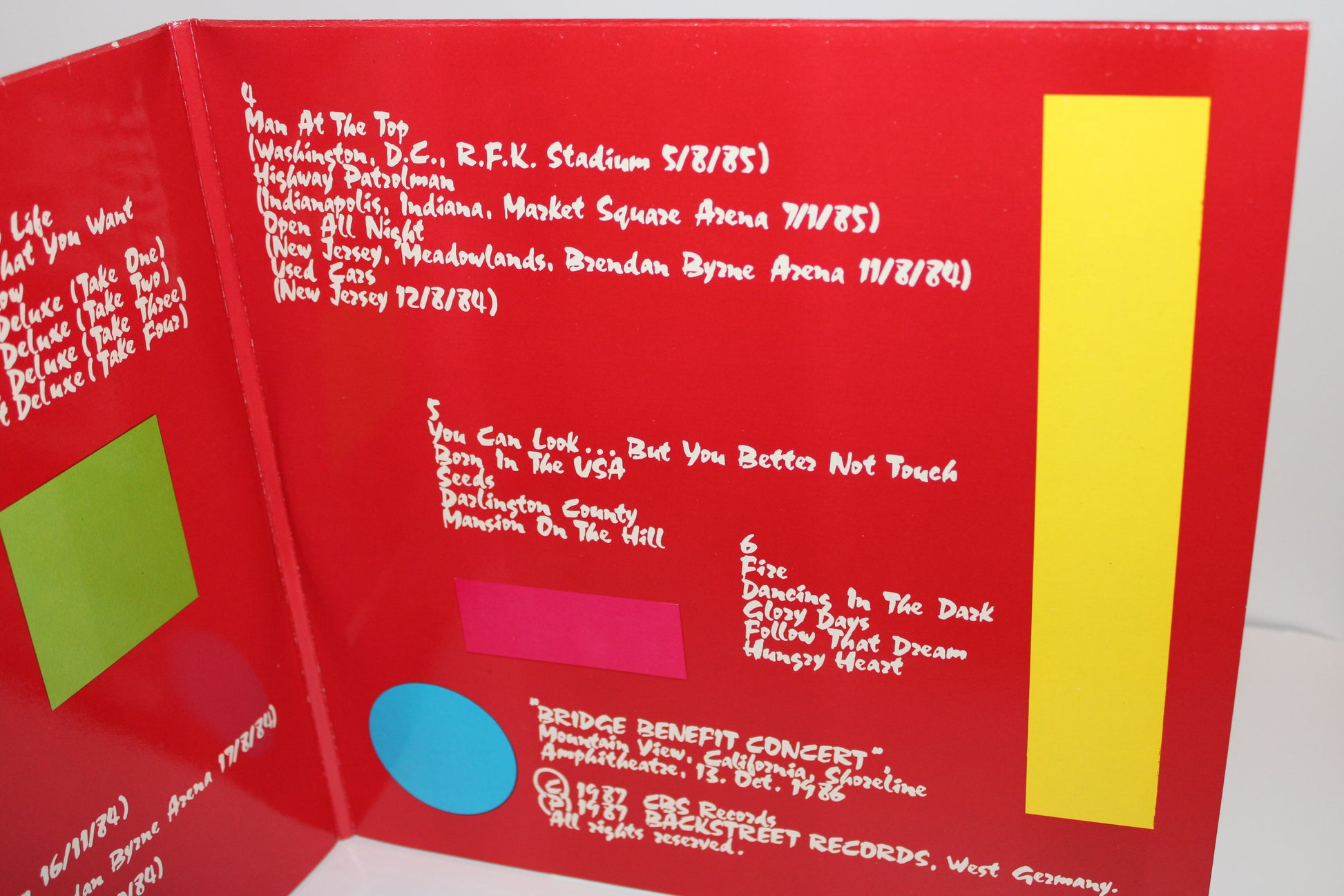 Bruce Springsteen - Acoustic Tales is a 3 LP Vinyl Bootleg set of Springsteen singing live at home. Record 1 offers Incredible songs that did not make it to the Nebraska album. Record 2 is live performances of songs from Nebraska on the BITUSA tour and Record 3 includes live performances at the Bridge Benefit Concert in 1986.