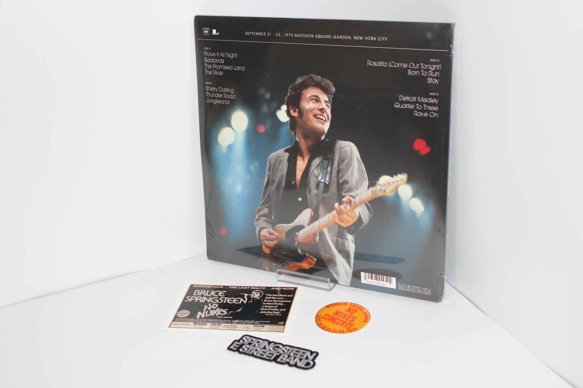 BRUCE SPRINGSTEEN & THE E STREET BAND: The Legendary 1979 No Nukes Concerts 2LPs special bundle with free Patch, Postcard & Sticker as seen in the pics. Brand New, pristine and sealed. Patch is 4" wide x 1.25" tall - ideal size for jacket or hat. Old school style sew on patch.
