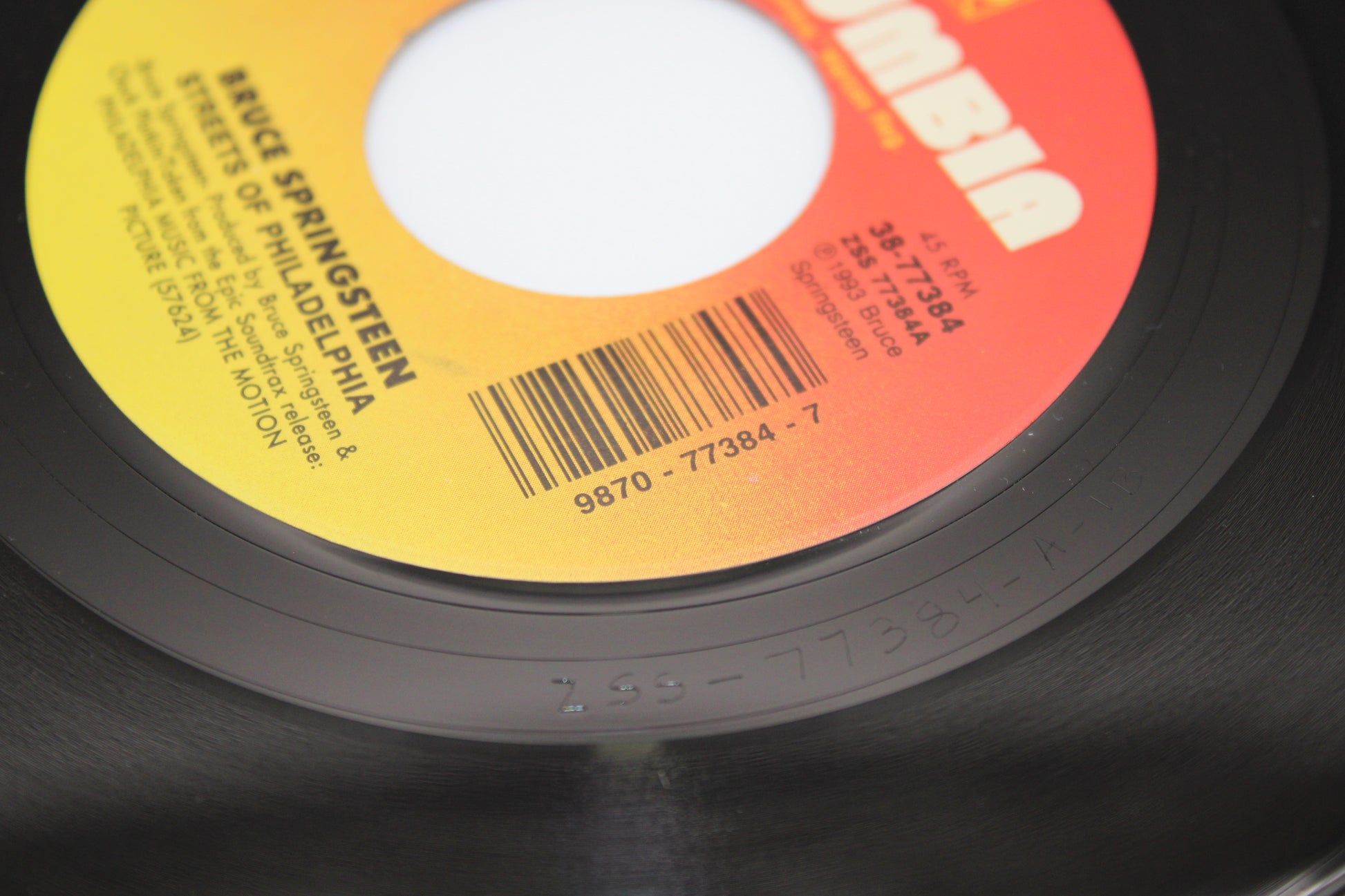 1993 Columbia 38-77384 near mint 45/7" record and sleeve.